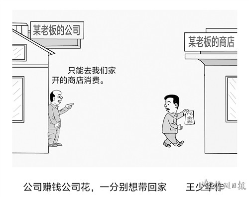 年终岁尾,劳动者都盼着辛苦挣的工资足额到手。可日前,吉林长春一名网友发视频吐槽,称工作三个月没有发工资,而是换来一堆被限定时间和地点使用的消费券。在该消费券的“使用规则”中,赫然写着“最终解释权归××集团所有”。有知情员工表示,这是工资代金券,并非年终额外福利,指定消费的场所与涉事公司是同一个老板。“公司赚钱公司花,一分别想带回家”,网友调侃真是“活久见”。 王少华/图