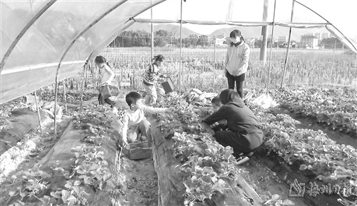本报讯 时下,位于蕉岭县长潭镇草莓采摘园的草莓陆续成熟,抢“鲜”上市,为寒冷冬日增添了别样的甜蜜。走进草莓采摘园,诱人的香味扑鼻而来,绿叶白花间缀满了鲜红娇艳的草莓。游客三三两两,手提小篮子,穿梭在地垄间,精挑细选,将一颗颗“红宝石”“收入囊中”。这里红色、粉色、白色草莓应有尽有,许多家长带着小朋友前来采摘,开启冬日“莓”好时光!“今天周末,带小朋友过来这边采摘草莓,这边的草莓都很大,很好吃,小朋友们也玩得很开心。”游客周先生满脸笑意地说。