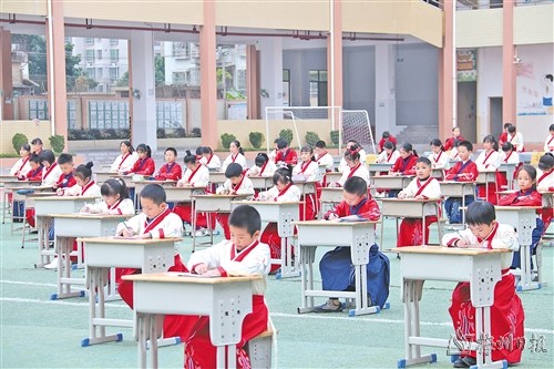 本报讯 (记者廖玉芳 通讯员罗秀琴 李丽娟)2024年12月27日,大埔县大埔小学举行了“侯宝斋杯”百人书法现场总决赛,该校学生齐聚操场,用笔墨书写豪情壮志,用书法展现青春风采。