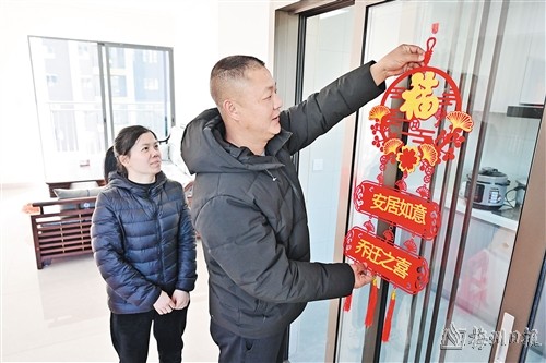 在记者采访的当天,不时能看到居民提着大包小包,开着小货车,忙着搬运家具等物品进入新家。走进居民张铮志的家里,他正和妻子一起贴墙画,为新家增添更多的温馨氛围。张铮志告诉记者,现在能分到这么好的房子,他感到非常开心。