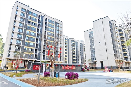 走进平远深圳小镇,只见19栋崭新的楼宇错落有致地排列,以“白墙灰瓦稻谷黄”为基调,楼栋间绿草如茵,茶树花、三角梅竞相绽放,枝头挂满了红灯笼,处处洋溢着浓浓的喜庆氛围。笔直的柏油路四通八达,宽阔的同心广场矗立中央,长者食堂宽敞明亮,儿童乐园新颖别致,都在静静地等待着新家的欢声笑语。