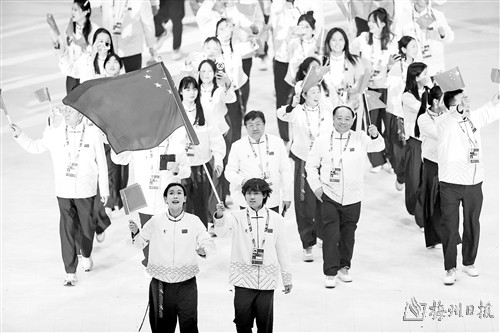 1月13日,中国大学生体育代表团在开幕式上入场。(新华社发)
