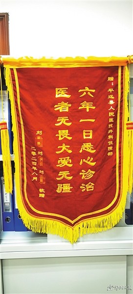 在平远县人民医院外科保存着一份意义非凡的礼物——一面写有“六年一日悉心诊治、医者无畏大爱无疆”的锦旗。这简短的16个字,不仅表达了患者家属深切的感恩之情,更展现了医患之间的真挚情谊。