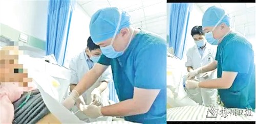 ▲医生为患者实施心包穿刺手术。
