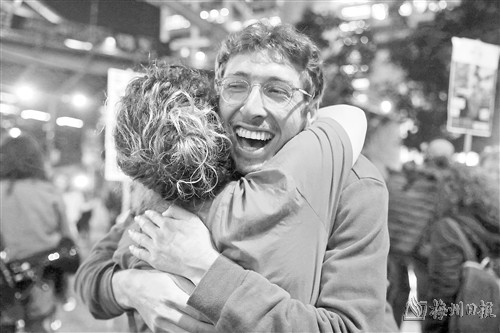 1月15日,在以色列特拉维夫街头,人们拥抱庆祝协议达成。