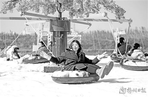 1月19日,游客在邯郸市复兴区东高河村滑雪场内游玩。