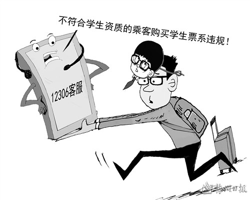 近日,有博主介绍,乘客可通过“伪装”成学生身份在12306购票软件上抢购春运车票的攻略在网上流传。每年铁路部门会为学生群体预留一些车票,买到票的成功率更大。于是有网友动起了歪脑筋,先以学生身份购票,随后到站内补票为成人票,实现成功乘车。对此,有媒体致电12306询问。客服表示:“不符合(学生)条件的话,要办理退票重新购买。”同时表示,按照这种方式购票并不符合规定,至于是否可以在上车或到站时补票,需根据上车车站的具体情况来决定,车站有权决定是否接受补票。 朱权/图