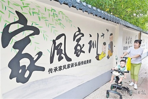 在新沙二巷,一幅幅彩绘作品“跃”上墙壁,墙绘内容不仅有3D卡通动物、童年游戏等主题元素,还有社会主义核心价值观、家风家训等宣传内容,提高了小区的文化内涵。