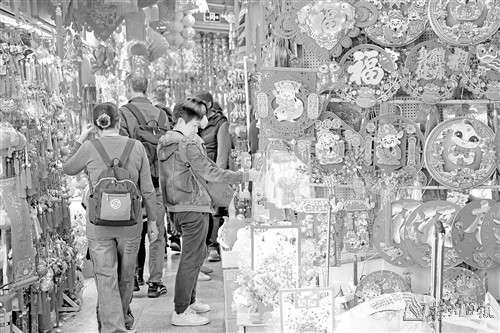 1月20日,市民在广州市一德路市场选购春节饰品。