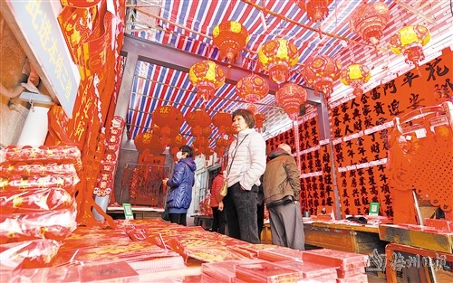 大埔县城的市集,是年味最为浓郁的地方之一。连日来,在县城的虎山路,许多市民趁着晴好天气到传统年货市场,置办春联和各种迎春饰品。