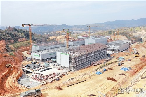 在黄槐镇四望嶂,广东省全民国防教育基地建设现场呈现一派热火朝天的景象。挖掘机挥舞着长臂,土方被不断开挖;压路机有条不紊地来回碾压,让道路基础愈发坚实;一辆辆工程车辆满载建材,穿梭在工地之间……600多名工人加班加点、争分夺秒,推动项目早日竣工。