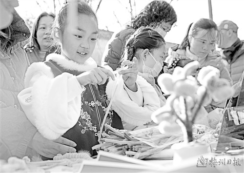 当日,杭州市西湖区第四届新春文化集在北山街道举行。一些小朋友在家长陪伴下前来感受非遗的魅力,迎接新春佳节。