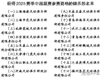 本报讯 (记者叶子通) 1月15日,记者从梅州客家足球俱乐部了解,根据中国足球协会公布2025赛季职业联赛参赛俱乐部名单,梅州客家足球俱乐部递补进入中超联赛。