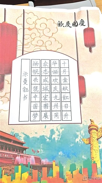 ▲书法 胡叶正(梅江区鸿都小学407班) 指导老师:刘英松 ▲书法 涂曼钰(梅州市实验小学302班)指导老师:连珍 ▲书法 叶宇浩(梅雁中学初一7班) ▲手工作品 温楷楠(梅江区金山小学104班) 指导老师:李春燕