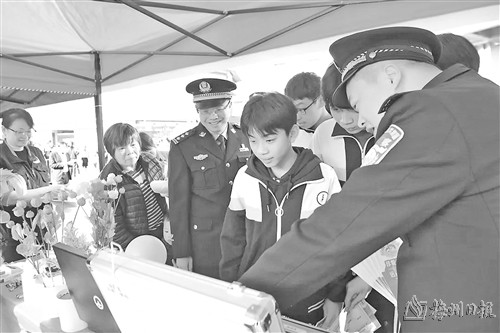 1月8日下午,五华县公安局组织指挥中心、国保、经侦、治安、交警、巡警、森警、网警、禁毒、打私和刑侦反恐反诈扫黑等警种部门走进奥园广场,通过猜字谜送春联、110知识问答、集“福”字印章等形式,将业务咨询区、法律知识宣传区、装备警械展示区、警民互动区等串珠成链,引导市民群众正确使用110,提升对110工作的理解与支持,进一步增强防范意识。