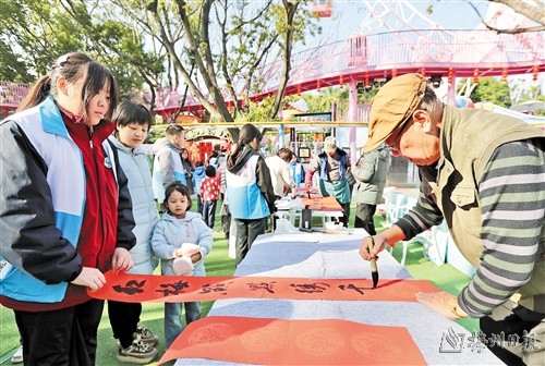 书法家现场挥毫,为市民送上新春的祝福与美好的愿景。(高讯 摄)
