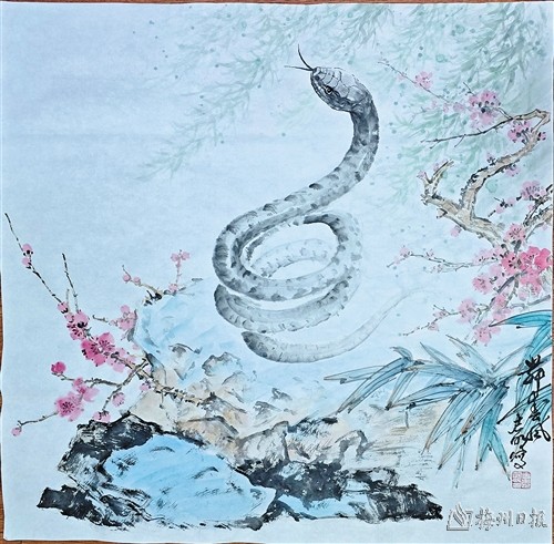 寒雪梅中尽,春风柳上归。农历新年前夕,本期书画版策划推出喜迎乙巳蛇年春节创作专题,选取当代书画名家作品,并邀请梅州本土及北京、福建等地的书画家和书法爱好者,以书画艺术为纽带,传递新春祝福,增添喜庆年味。这些作品主题突出、内涵丰富,形式多样,充分反映了创作者对蛇年新春的美好祝愿。