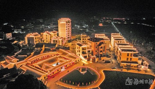 蕉岭县新铺镇象岭新村靓丽新颖的灯饰,洋溢着浓厚的节日氛围。(汪敬淼 摄)