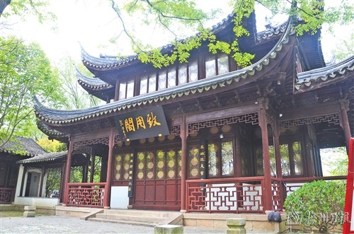 循着青石板街南行至尽头,看到一座坐西朝东、青砖黛瓦的明清建筑,它就是千灯诸景之首——顾炎武故居。我跨入门厅,顾炎武青铜半身像跃入眼帘,他头戴学士冠,长须冉冉,双目圆睁,脸上满是忧愤的神情。穿过轿厅,依次便是正厅、楠木厅、住宅楼、读书楼,故居的布置和家具保持着最初的模样,古朴大方,而不是专门为人造访而设。各厅内陈列着顾炎武先生手迹、著作、生平事迹……后花园曲水缭绕、亭台错落、四季有花、翠意盎然,俯仰之间皆是美景,光与影斑驳洒落在角落里,成了盛夏最珍贵的一抹清凉。在这山水与人文融汇的顾园待久了,不经意间似乎沾染了诗意气质,慈母阁、秋山亭……印象最为深刻的是草坪上栩栩逼真的顾母教子像,逼真地再现了亭林先生当年生活、读书场景,都说母亲是孩子的第一位老师,顾炎武的养母王氏是“昼则纺织,夜观书至二更乃息”,是一位知书达理的女子,她经常手把手教爱子写字,还给他讲岳飞、文天祥的故事,顾炎武打小心里就落下了义的种子。在明亡清兴之际,顾炎武的生母被清军砍断手臂、养母王氏绝食自尽、兄弟被残忍杀害,国仇家恨不共戴天,烙下刻骨的仇恨。他参加过壮烈的南明抗清斗争,南北奔波,有过牢狱之灾,半生颠沛流离,他一边流浪,一边读书,将“读万卷书,行万里路”知行合一地落到实处,终成继往开来一代宗师。清廷向他抛出“橄榄枝”,他非但不“领情”,每年端午,在门前悬挂红色蔓菁,在里头塞上蒜青,并在后面挂一块白布,白布上写着“避青”二字,意为“不直国朝恶而避之”,一代鸿儒又多了个“避青先生”的雅号,铮铮硬骨,不下武夫。