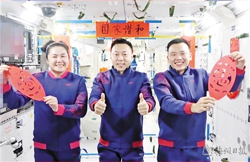 为了迎接蛇年春节的到来,这两天,他们在空间站里挂上了春联,张贴了福字,中国天宫里充满了浓浓的年味。