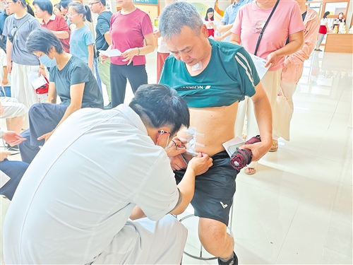 活动现场,市民在体验三伏贴。(刘巧 摄)