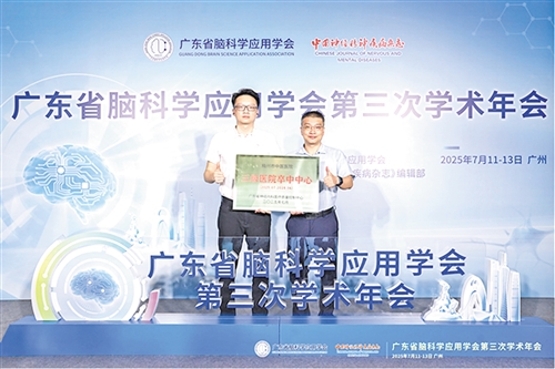 本报讯 2025年7月11至13日,广东省脑科学应用学会第三次学术年会在广州召开,会上公布了广州中医药大学梅州医院(梅州市中医医院、梅州市田家炳医院)通过国家三级医院卒中中心现场评审,并举行三级医院卒中中心授牌仪式。广州中医药大学梅州医院正式被授予国家“三级医院卒中中心”。医院副院长张俭、脑病二科罗妙泉主任参加授牌仪式。