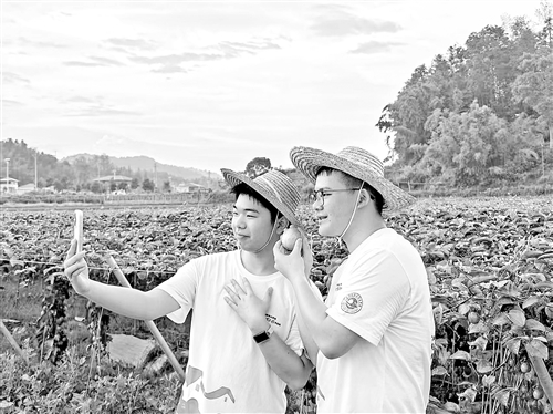 从出发前的直播技能集训到奔赴乡村落地实践,从室内直播间到户外田间地头,从首场直播的小心翼翼到收官之战的从容自信……这个夏天,广东邮电职业技术学院数字商务产业学院(以下简称“广邮数商学院”)“百千万工程”突击队的学子们用线上直播和社群运营的方式,为梅州平远的农特产品打开了一扇通往外界的“数字之门”。
