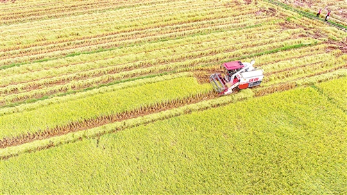 时下,夏粮收割接近尾声。在大柘镇梅东村的稻田里,沉甸甸的稻穗压弯了稻秆,轻风吹过,稻香四溢。农机手驾驶收割机在田间穿梭作业,机声隆隆中,一行行稻秆被精准切断,金灿灿的谷粒随即通过卸粮筒倒入一旁等候的运输车。