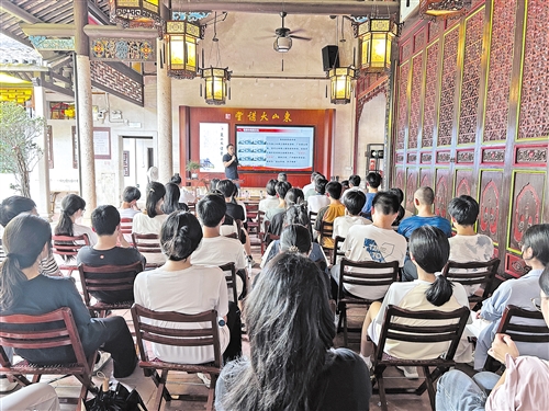 在梅州市岭南书院(东山书院)的红色讲堂,学院讲师廖志伟、邓玉柱分别以“深挖粤商文化,推进新时代客家文化建设”和“深刻领会总体国家安全观”为主题,带来了精彩纷呈、贴近生活的主题宣讲,让台下的返乡大学生和青年志愿者直呼“学到了”“非常有意义”。