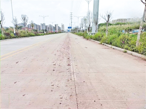 图1为该路段整治前,路面存在大面积的积泥积尘。