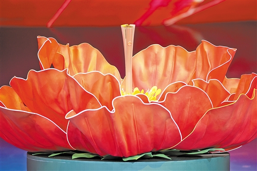 十五运会和残特奥会颁奖音乐以岭南名曲《彩云追月》为音乐元素,融入粤港澳三地钟声。颁奖礼服保留传统马面裙的裙门廓形,整体颜色以粉色为主。裙身的牡丹花“一枝独秀”图案是设计亮点,灵感来源于中国四大名绣之一粤绣。