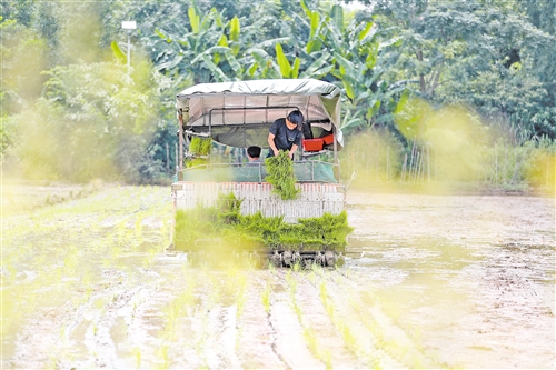 8月初,五华县安流镇吉程村育秧田里,自动化喷灌系统正在作业,绿油油的秧苗长势喜人,村民们小心翼翼地将一盘盘秧苗从苗床上剥离,卷成一团放到农用运输车上。在另一边平整好的水田里,载满秧苗的插秧机来回作业,一株株秧苗挺直而立,连线成片。“今年上半年的天气整体有利于水稻种植管理,我们种植的丝苗米实现丰收,亩均增收100多斤。我们扩大了晚稻种植面积,8月初开始进行机械化插秧,预计月底能完成1300亩水稻秧苗移栽工作。”梅州市稻宏农业服务有限公司副总经理钟茂美说。