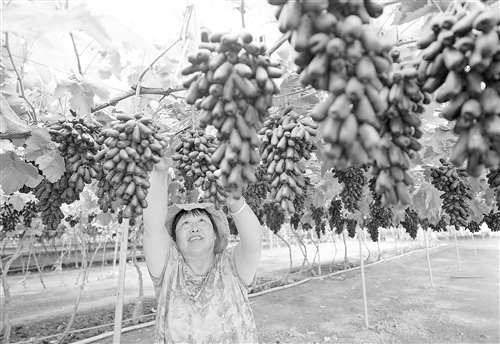 日前,果农在河北省昌黎县十里铺乡耿庄村蓝阔庄园采摘葡萄。