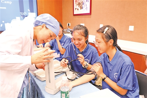 据了解,这届生命科学夏令营秉持“科学与人文并重”的核心理念,研学基地包括广州泰和肿瘤医院、华南新药创制中心、华南农业大学、广州国际生物岛、广州达博生物制品有限公司。学生们深入接触新药研发与临床试验、质子前沿技术,亲自体验腔镜手术模拟操作、心肺复苏演练、动物实验操作、3D打印等。