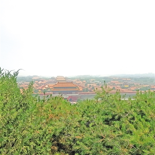 早听说景山公园位于北京中轴线上,那天,我们慕名乘坐公交车来到故宫神武门对面,位于北京城中心的景山公园。