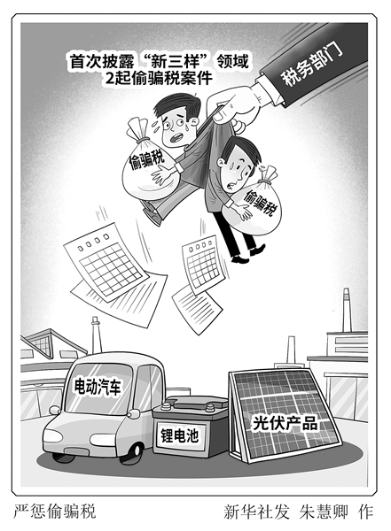 新华社北京8月18日电 国家税务总局18日对外发布“新三样”(电动汽车、锂电池、光伏产品)领域2起偷骗税案件,这是税务部门首次披露该领域的违法案件。