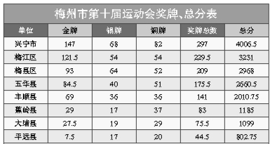 梅州市第十届运动会成绩统计表(制图:黄艳)