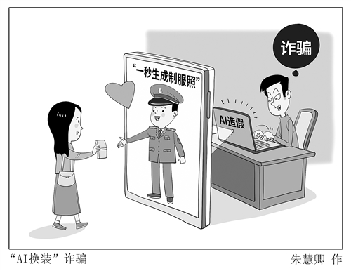 用户只需上传一张生活照,便可一键生成个人军装照、警察照……有记者调查发现,一些AI工具推出“换装”功能,引发不少军警迷的追捧。但是,有不法分子利用“AI换装”功能,伪造军警身份招摇撞骗,亟待引起警惕。有法律人士建议,AI开发者在算法设计中应加强合规性审查,对警察和军队标识等敏感信息内容的使用,应在相关部门指导下,严格把关审核。 朱慧卿/图