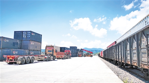 梅州国际陆港内贸运输业务正式开通,实现内外贸物流并行运作。(通讯员供图)