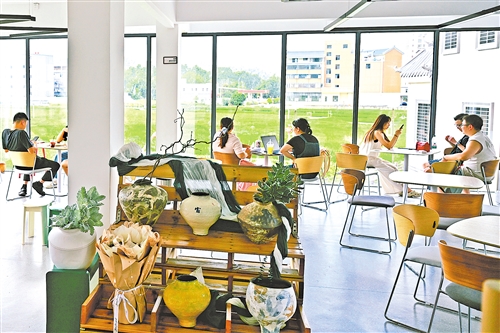 作为半公益性质的文化空间,风眠书院实行开放式阅读,市民游客可免费进店捧书静读;同时,书院还提供咖啡、刨冰、客家特色菜等服务,满足社交小聚、家庭聚餐等需求。书院时常会邀请乐队驻唱,或是联合梅江区图书馆举办各类沙龙活动,丰富群众精神生活。“‘半公益+轻商业’的模式,既降低了文化消费门槛,也为书院持续运营提供了支撑。”谢战雄表示,希望用最具烟火气的方式,让这座百年客家古民居重新焕发活力。