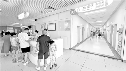 不少家长带着小孩在儿童门诊区登记就诊。(梅州市妇幼保健院供图)
