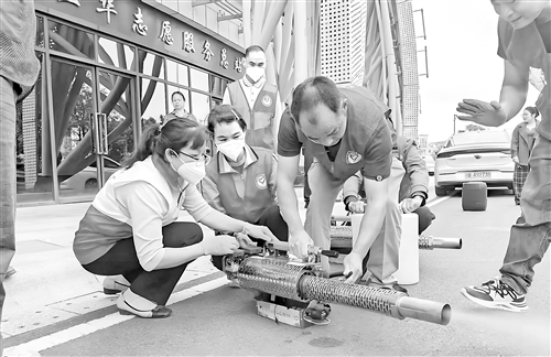 会上,县志愿者联合会秘书长温东初系统讲解了“两热”传播途径、临床症状及志愿服务要点。会后,青年志愿突击队还开展模拟场景实操演练,并对奥体中心周边绿化带、卫生死角进行实地消杀。