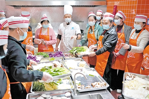 图为学员在旬阳市一家职校参加中式烹调师培训。