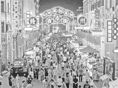 今年的“十一”长假,阳明路标准钟夜市街再“亮灯”。历史的钟声依旧在回响,骑楼下的烟火气正愈发浓郁。