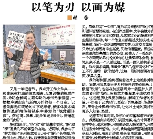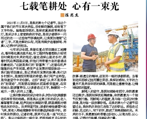 编者按:今天,我们把镜头调转,对准自己——六位来自梅州日报社的“幕后”编辑与“前线”记者。他们中,有在深夜灯火下锱铢必较的版面“守门员”,有用像素与色号替新闻上色的“视觉翻译官”,也有把无人机当笔、把工地当纸的“六边形”记者。媒体变革日新月异,AI热点、秒级传播、元宇宙直播间等新词汹涌,他们却在潮头立住一根锚:先到现场,再做判断;先问真相,再谈流量。他们深信,再冰冷的代码也盖不住人间烟火,再炫目的特效也敌不过“我在现场”四个字。翻开这六篇自述,你会看见同一张脸——沾着泥土、映着屏幕微光,却写着同一行字:记录梅州,就是记录时代;守住初心,才能守住未来。第26个中国记者节,让我们借他们的故事,为所有仍在路上、在键盘、在直播间、在田间地头的新闻人举杯——愿你我的每一次抵达,都是下一次出发的号角。