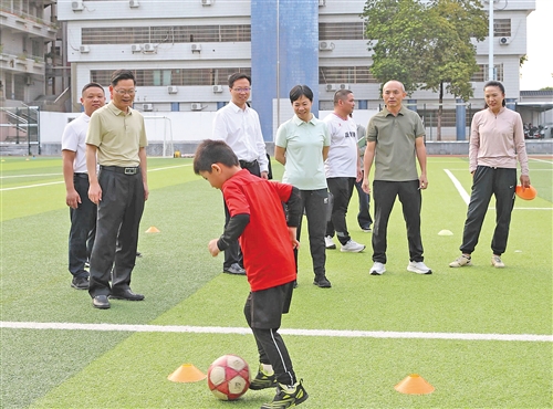 本报讯 近日,五华县委书记钟秀堂调研体教融合等工作,强调要深入贯彻落实习近平总书记关于体育强国建设的重要指示精神,深刻把握发展足球事业的时代内涵和重要意义,坚持改革创新发展青少年足球,持续深化体教融合,完善青训体系,强化基础设施建设,为持续擦亮“五华足球”名片奠定坚实的人才基础。