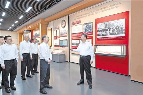 7日下午,习近平来到位于梅州市梅县区雁洋镇的叶剑英纪念园。在叶剑英纪念馆,习近平向叶剑英铜像敬献花篮,参观叶剑英生平事迹陈列。随后,又参观叶剑英故居。习近平强调,我们今天取得的伟大成就,都是建立在毛泽东等老一辈革命家打下的江山、攒下的家底之上的。要结合党史宣传教育,讲好老一辈无产阶级革命家的故事,教育引导广大干部群众特别是青少年传承红色基因、赓续红色血脉,永远听党话、跟党走。