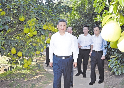 离开时,习近平同村民们亲切道别。他叮嘱,党和政府要继续加强对老区的政策扶持,老区广大干部群众要齐心协力、奋发图强。他祝愿乡亲们的日子过得像金柚一样又甜又美。