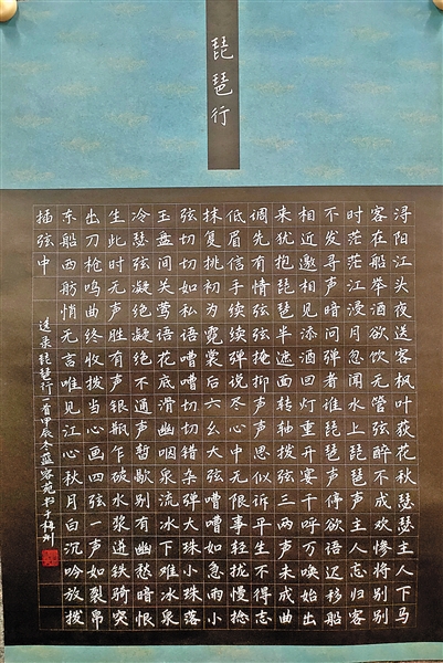 国画《桂岭乡韵》 845mm×1695mm 蕉岭县桂岭学校 黄勋晖 国画《春静鸟声乐》 170cm×82cm 五华县高级中学 魏伟华 版画《锄禾》 50cm×118cm 梅县区第一职业学校 杨丽婷 漆画《霓冠未央》 80cm×80cm 五华县高级中学 李杏珍 书法《琵琶行》 42cm×29cm 梅州市曾宪梓中学 蓝容苑 漆画《望乡》 50cm×50cm 丰顺县实验中学 徐文俊 书法《康有为论书》节选 180cm×45cm 五华县田家炳中学 廖自明 国画《书海觅心》 68cm×120cm 嘉应学院 徐印豪 陶艺《雄狮》 9cm×22.5cm×17cm 大埔县高陂实验学校 黄家有 刘海 刘惠芬 版画《天堑变通途》 90cm×120cm 兴宁市实验学校 刘小霞 剪纸《万物生》 78cm×109cm 梅江区芹洋学校 谢施思 谢施慧 编者按 日前,“为艺术战”梅州市第二届“林风眠杯”师生美术作品大赛暨2025年学校美育成果展在嘉应学院举行。活动由嘉应学院美术学院、梅州市教育局主办,广东省林风眠艺术研究与实践中心、广东省林风眠艺术和客家美术实践研究美育名师工作室协办。 本期“书画”版选登部分优秀作品,敬请垂注。