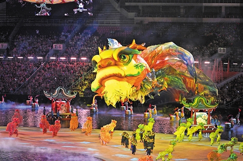 11月9日20时48分许,广东奥体中心灯光渐暗,全场寂静。观众静静等待着第十五届全国运动会开幕式文艺展演的启幕。